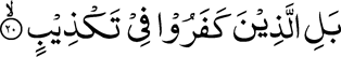 [85:20] بلکہ وہ لوگ جنہوں نے کفر کیا وہ تکذیب ہی میں (لگے) رہتے ہیں۔